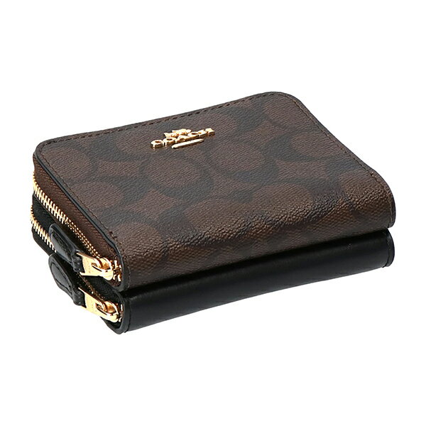 商品タグ:コーチ アウトレット COACH OUTLET 2つ折り財布 シグネチャー SIGNATURE スモール ダブルジップ アラウンド ウォレット メタルロゴ 総柄 ラウンドジップ エレガント フェミニン レディース BROWN/BLACK(ブラウン/ブラック) 送料無料 おすすめ