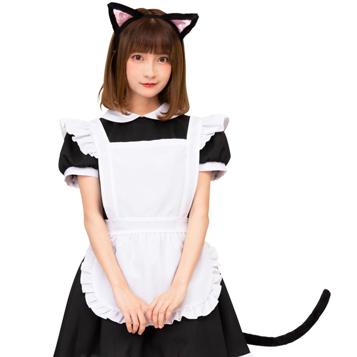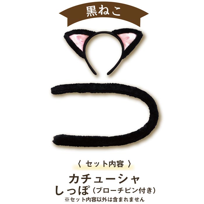 ≪Costume≫けもみみしっぽセット 黒ねこけもみみカチューシャとしっぽの2点セット。
